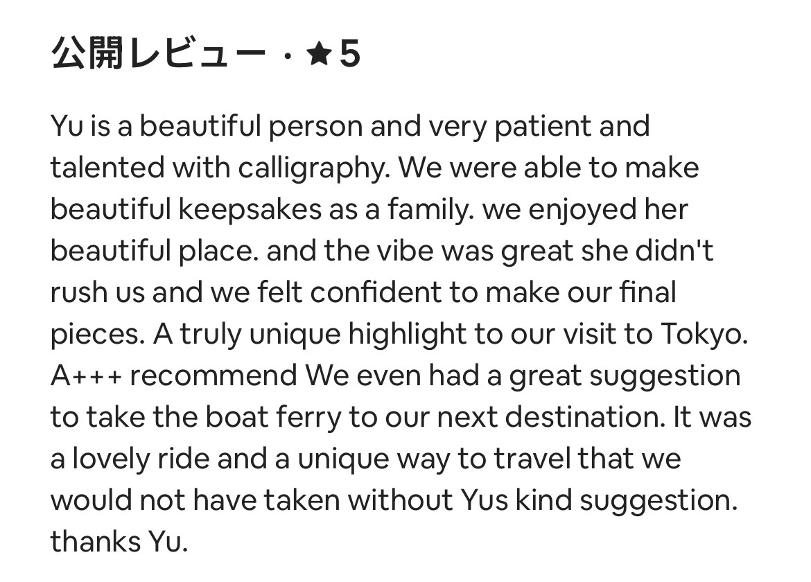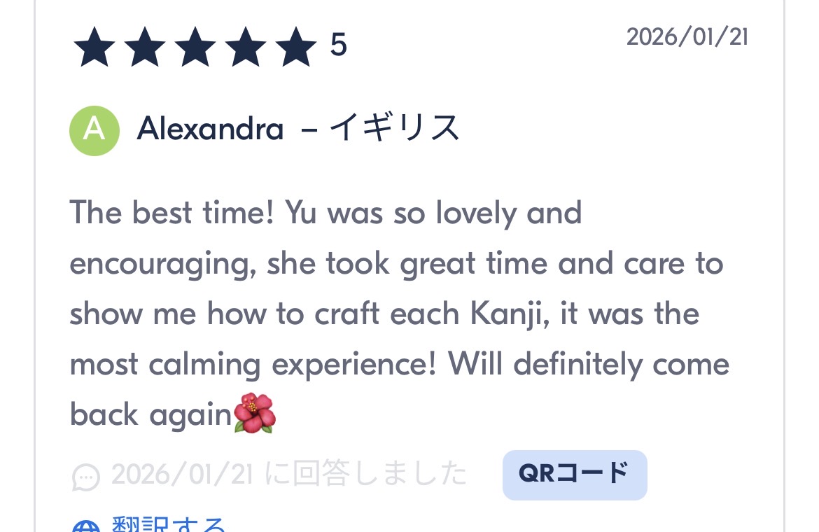 ※ Please send a message 「toyosu.shodo.experience@gmail.com」 for the service outside business hours